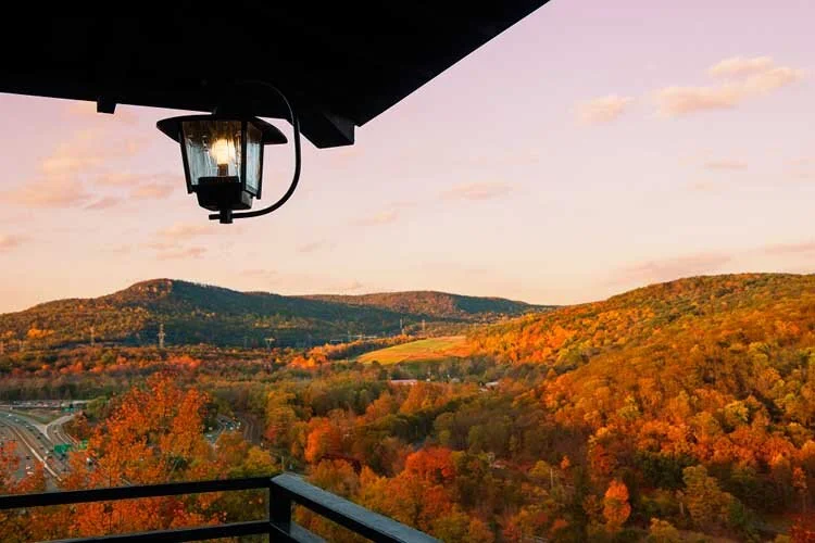山頂にあるレストランからは周囲の山々が一望でき、遠くにはマンハッタンも見えます!今からの時期は紅葉も楽しめますよー!