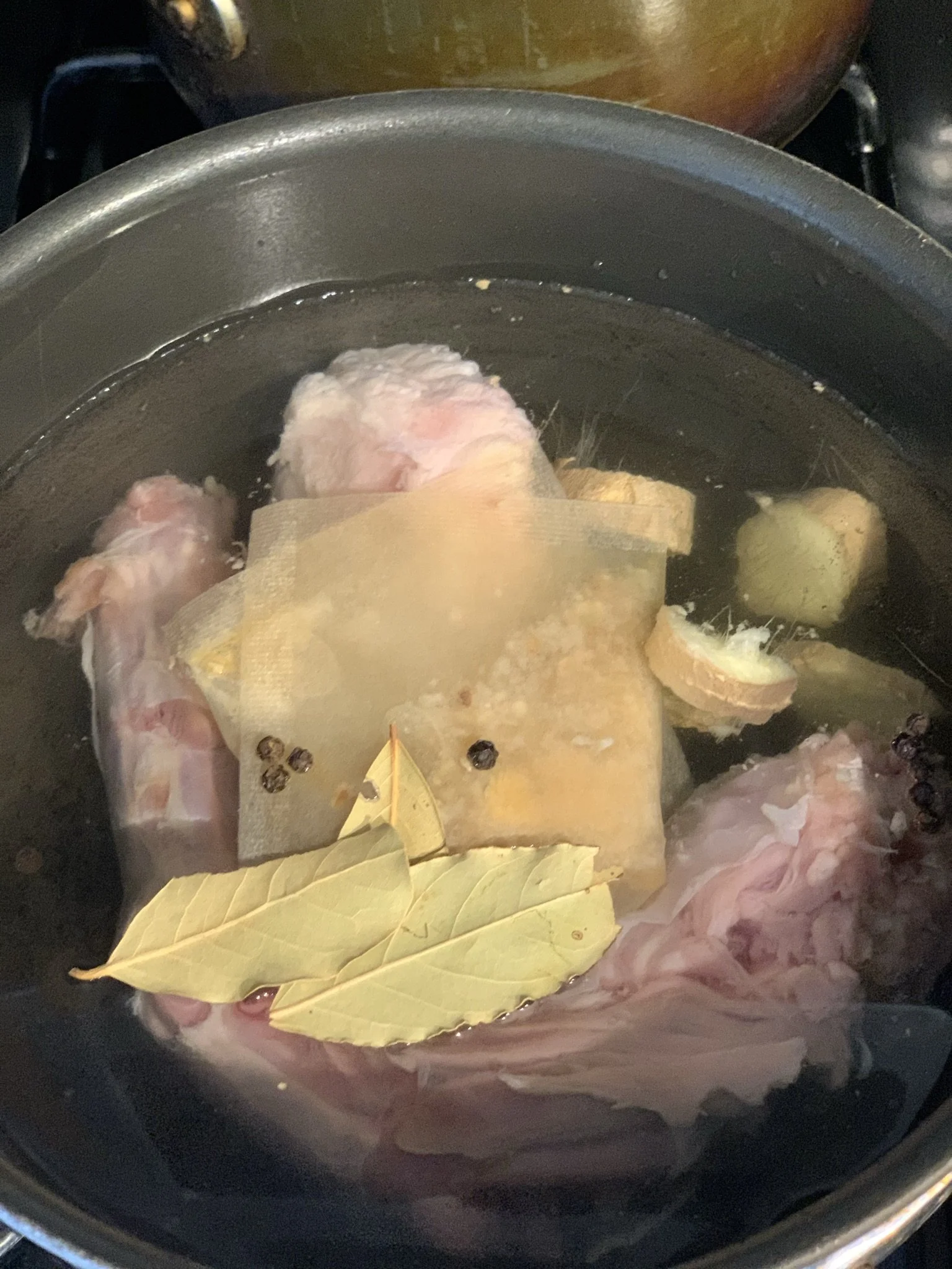 首骨はへし折って香味野菜と一時間くらい煮込んで軽く塩を加えてスープを作ります。