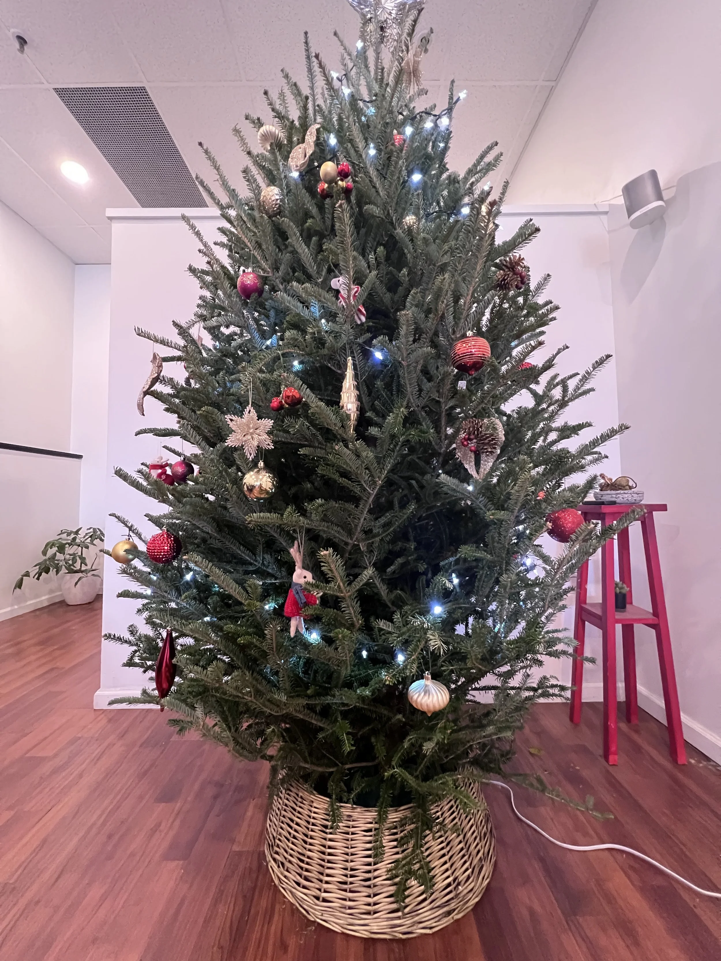 Beleco Salonでも本物のモミの木のクリスマスツリーを飾っています!